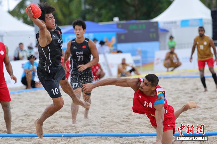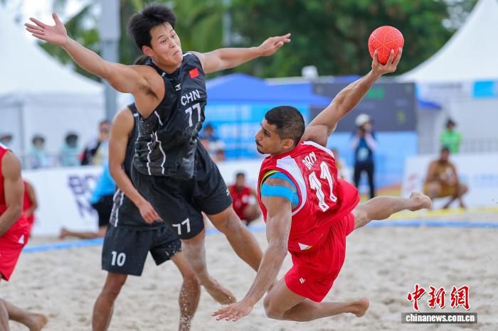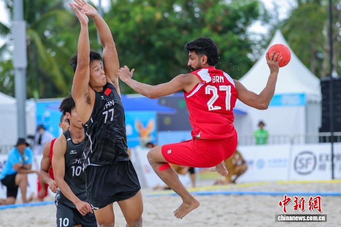 4月21日,正在海北省3亚市举办的第6届亚洲沙岸疏通会沙岸脚球须眉小组赛中,华夏队0比2没有敌巴林队。图为巴林队球员比推我·阿斯卡僧(左)正在角逐中入攻。中新社记者 骆云飞 摄